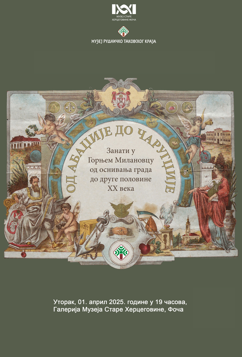 Изложба Музеја рудничко таковског краја „Од абаџије до чаругџије“ ауторке етнолога Наташе Поломац Петковић биће отворена у уторак, 1. априла, у 19 часова у галерији музеја.